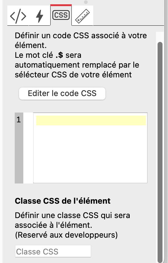 O seletor .$ ‘mágico’ do WebAcappella facilita a criação de regras CSS para seus elementos. Esse seletor será automaticamente substituído pelo seletor correspondente ao componente atual.
