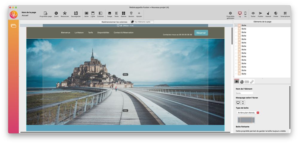 Esse efeito de flutuação é definido no nível da caixa que contém o menu (e outros elementos, como um logotipo, por exemplo)